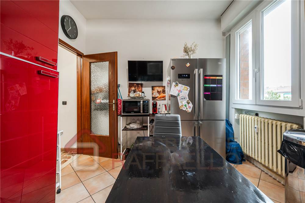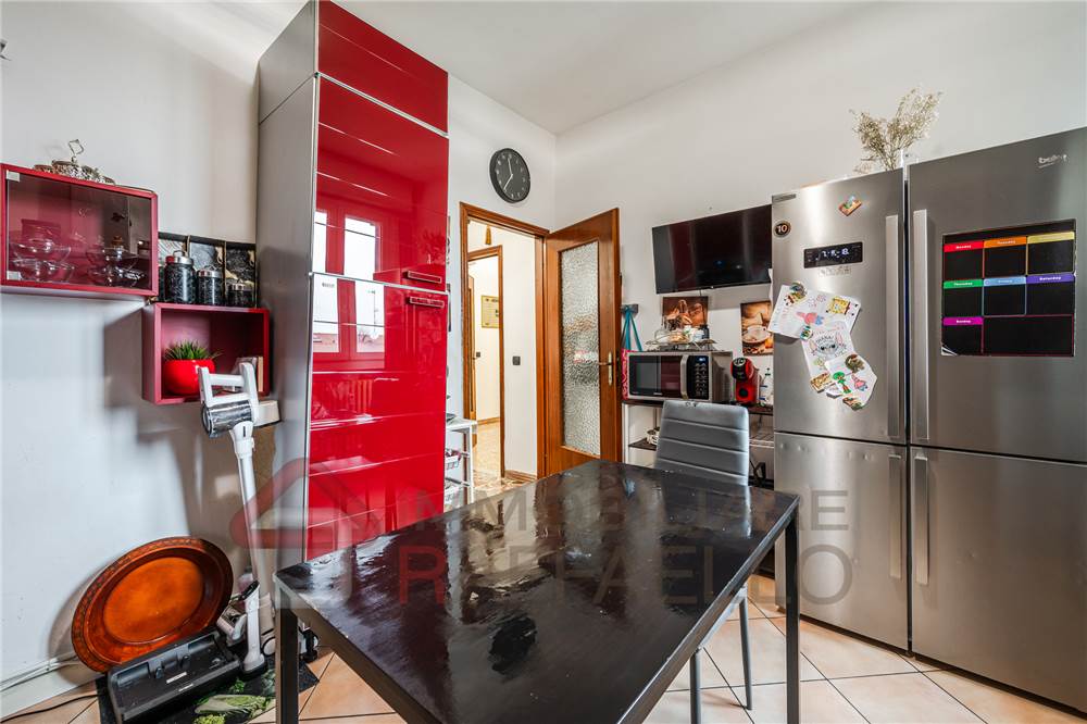 L'appartamento si apre su un accogliente ingresso che conduce alla cucina abitabile ristrutturata, perfetta per vivere la quotidianità in famiglia.