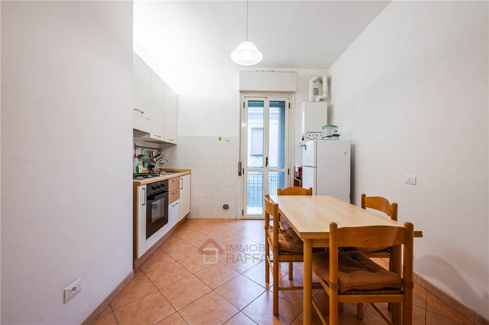 L'immobile è composto da : ingresso, ampia cucina abitabile, due camere da letto, bagno. Cantina al piano terra e posto auto condominiale.